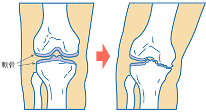 変形性ひざ関節症は、関節の軟骨がすり減ることによって痛みが起こる加齢疾患です。